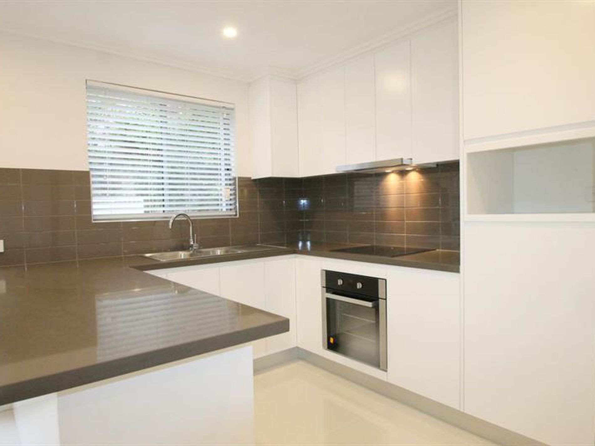 - Ultra modern kitchen with stone top and stainless steel appliances