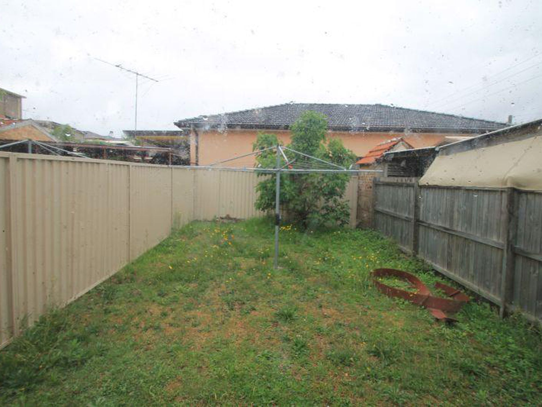 Private backyard with grass