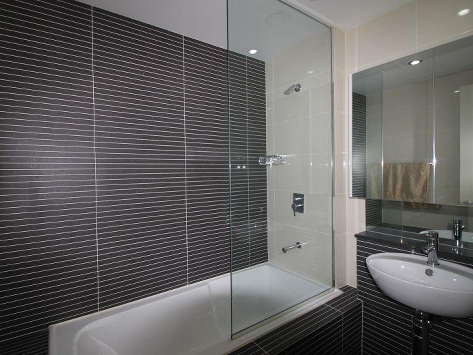 Luxurious bathroom with floor-to-ceiling tiles