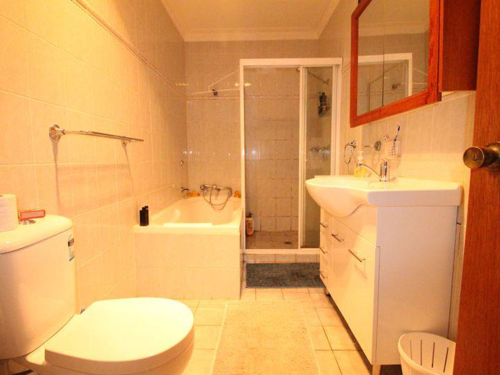 Located on the upper level of a well presented house this modern three bedroom home features high ceilings and tiles throughout.