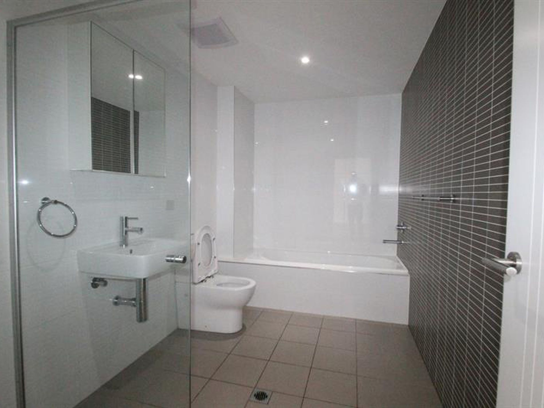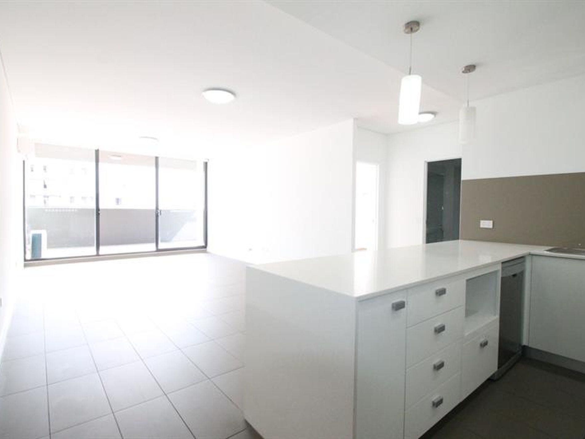 - Tiled floor to an open plan living and dining area leads out onto an entertainer's balcony