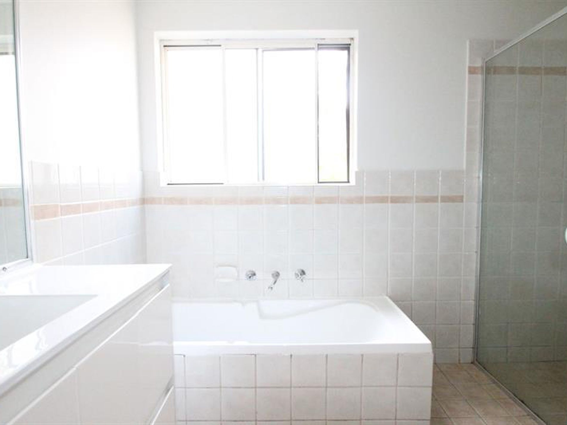 Tiled bathroom with separate shower