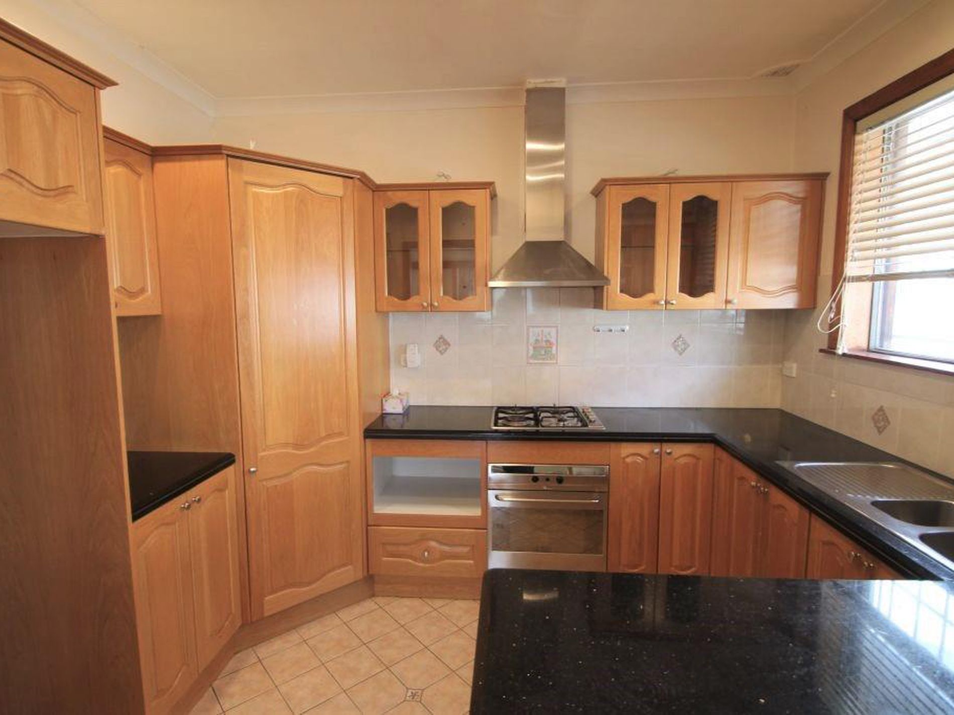 - L-shaped kitchen with gas cooking and 2 seater benchtop