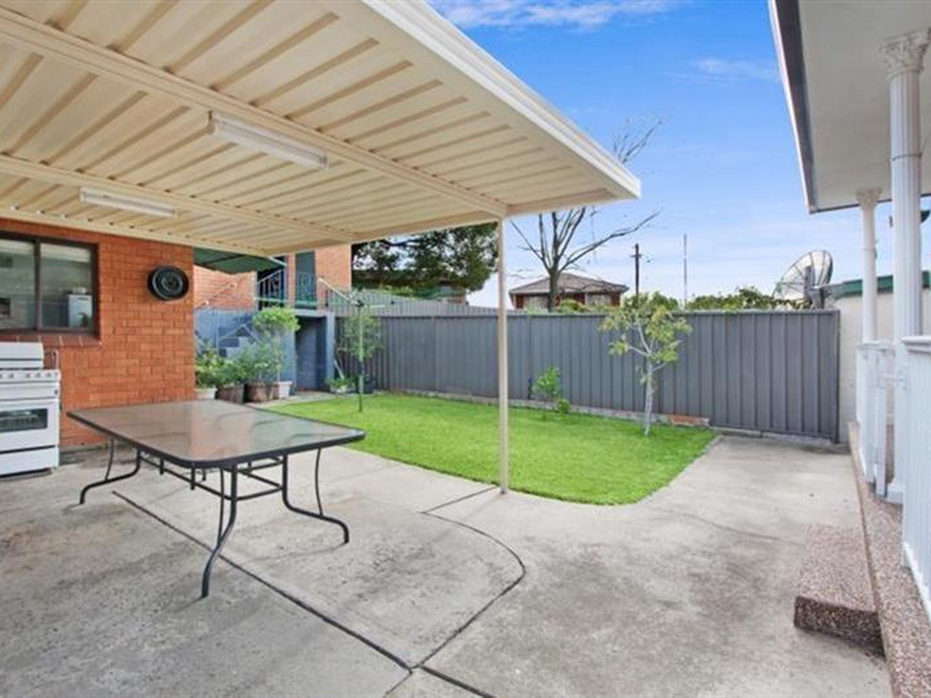 - Private Rear garden with pergola covered entertainment area