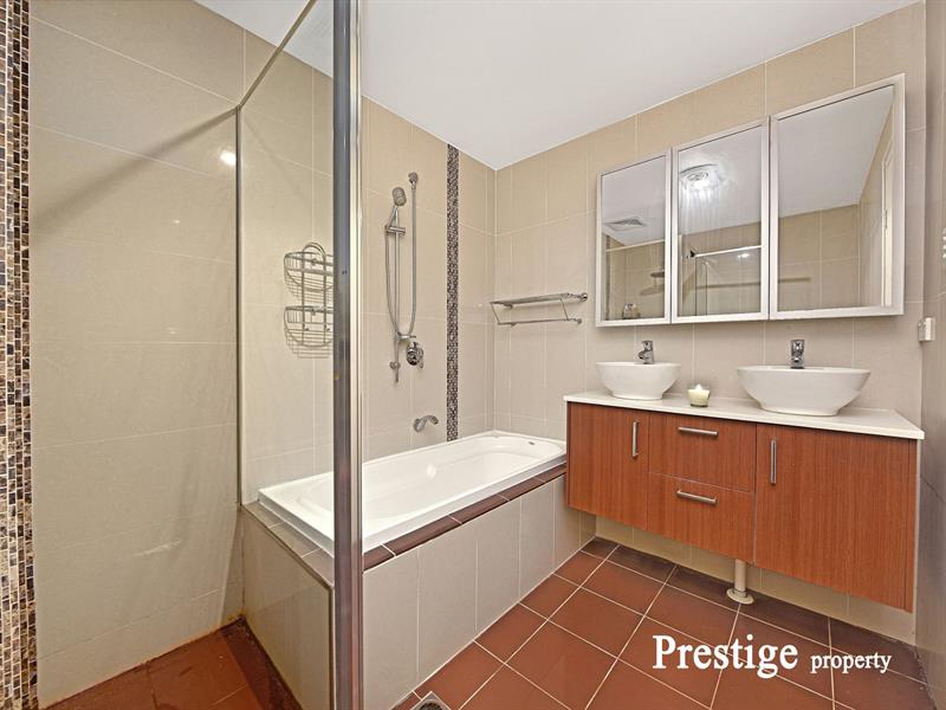 Stylish tiled bathroom with separate shower and bath