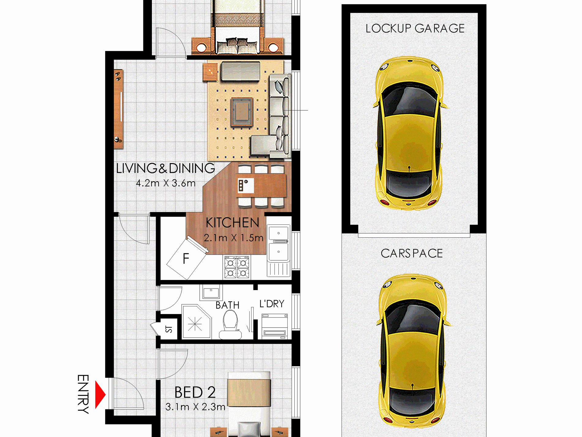 Tiled flooring throughout, air-conditioning, lock up garage