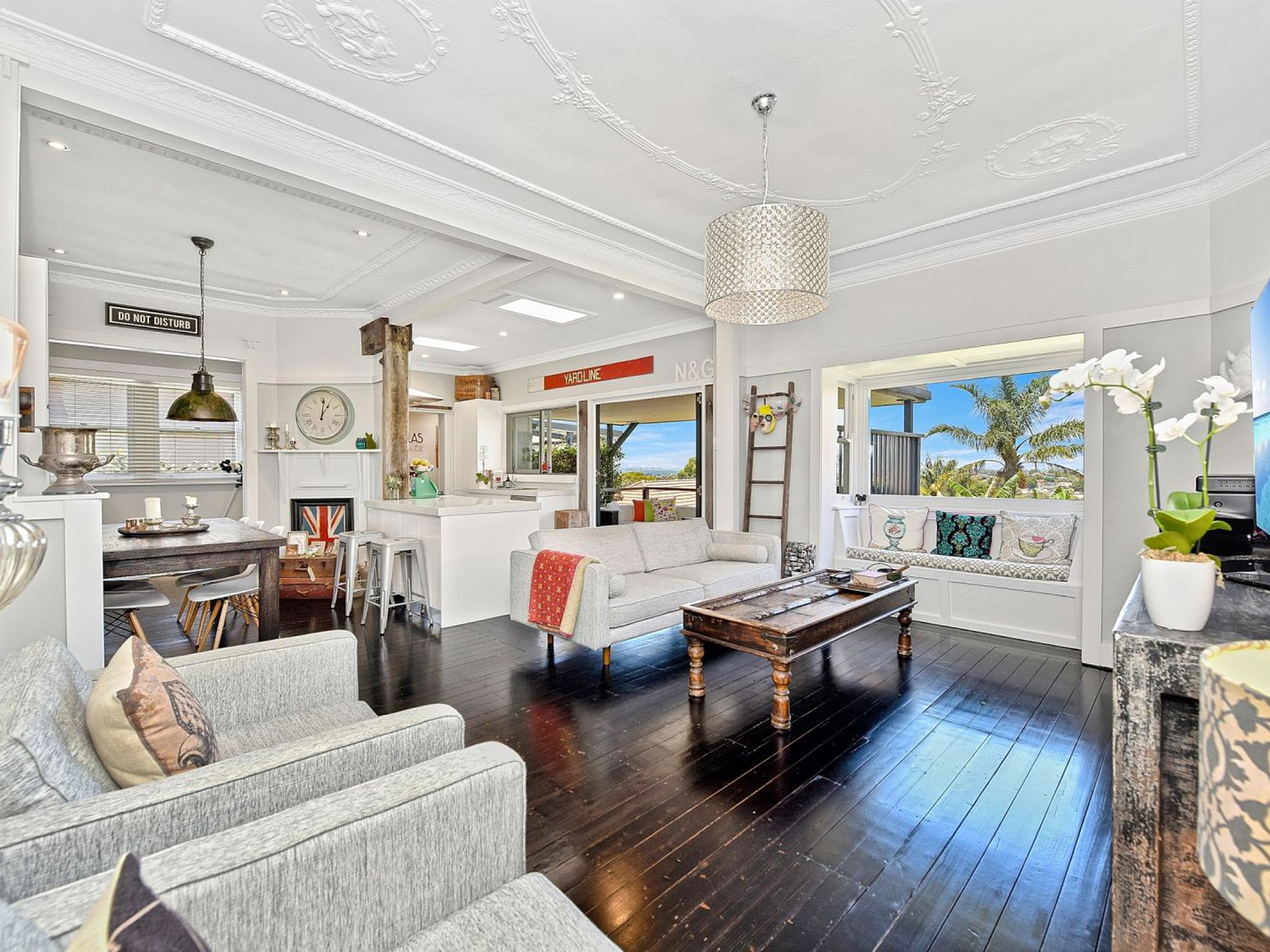 Thoughtful planning, meticulous craftsmanship and a disciplined attention to detail have transformed this much-loved freestanding period residence into a contemporary urban oasis. With many of Hickman's original features sympathetically preserved, including soaring decorative ceilings and detailed, ornate woodwork and trims throughout, the rear of the property boasts contemporary open-plan sophistication and seamless indoor/outdoor living that creates a wonderful sense of peace and calm. Entertainment is a delight here, with panoramic Botany Bay views from the spacious lounge, high-end galley kitchen, and large covered deck area. Stairs lead down to a sizeable private guest retreat and a second terraced sanctuary, overlooking a low maintenance, travertine-tiled courtyard bordered by fragrant jasmine.