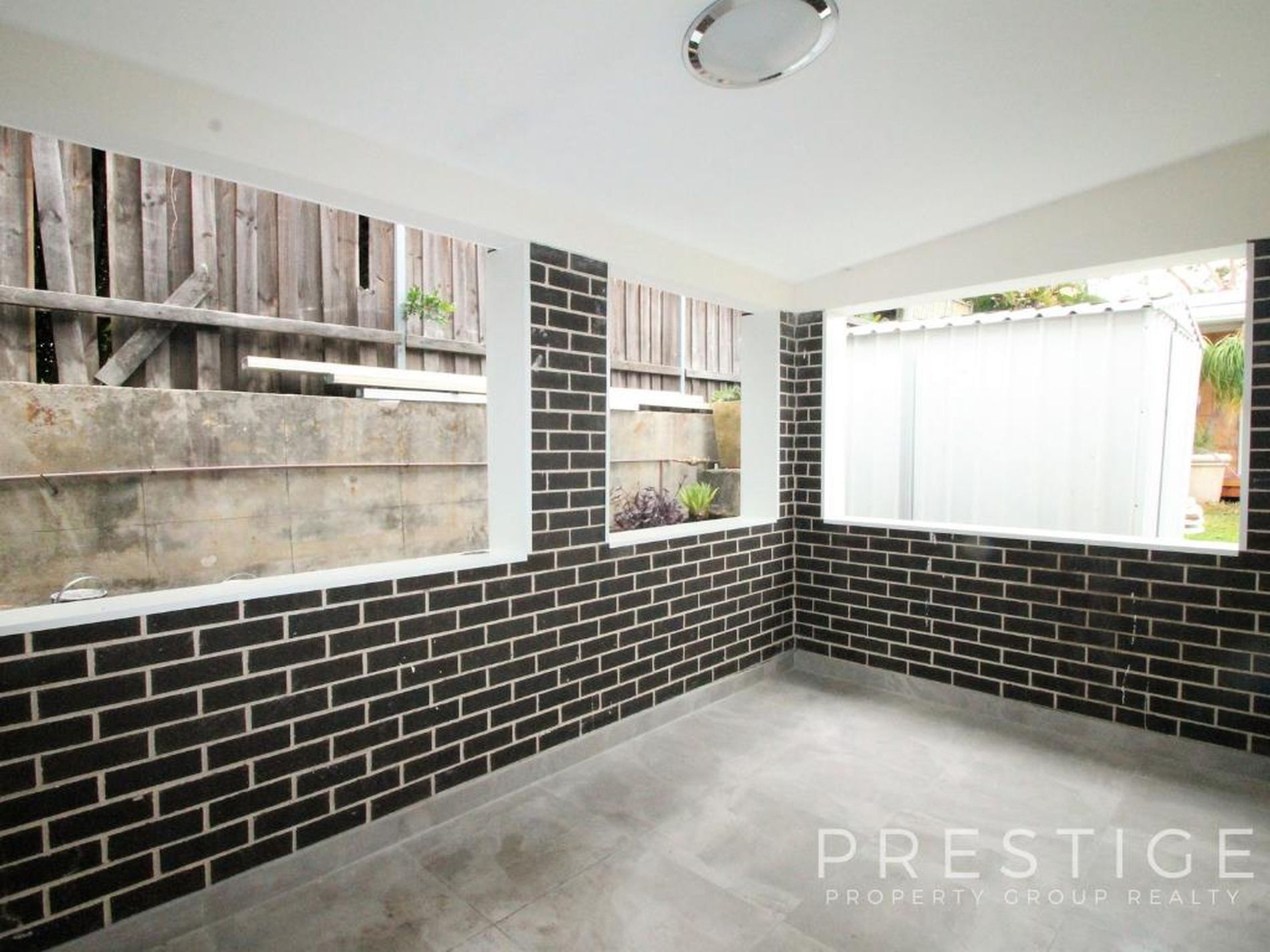 -sunlit 3rd bedroom with brick wall feature