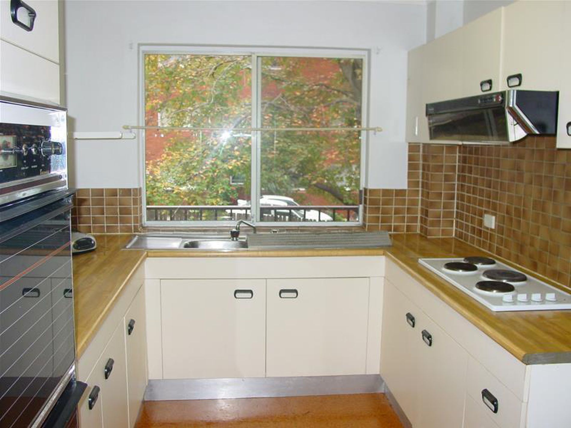 * Walk-in kitchen with electric cooking