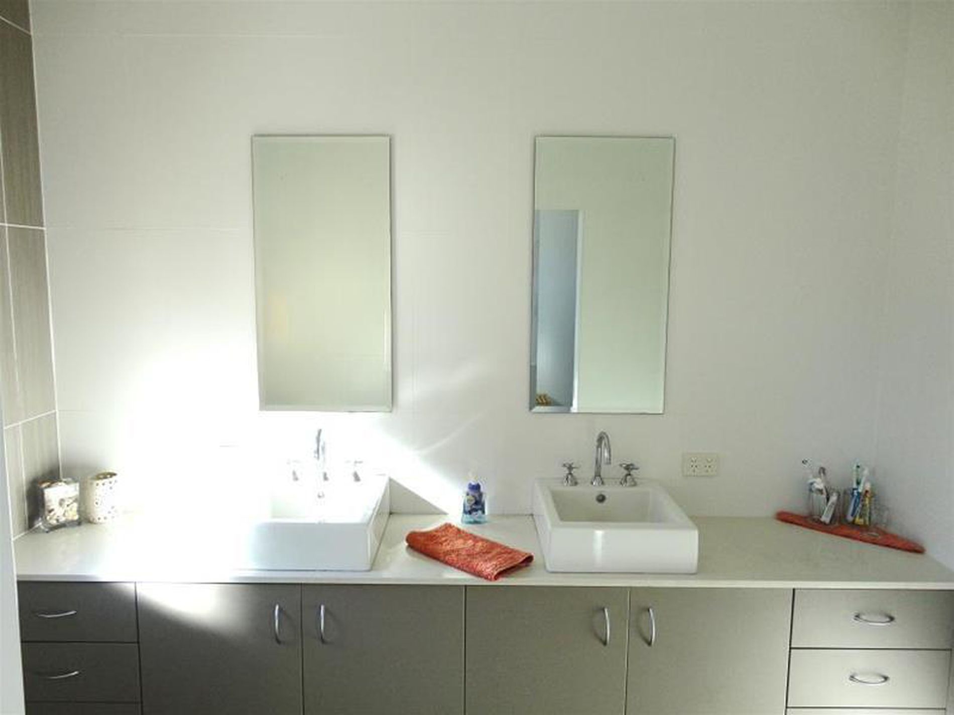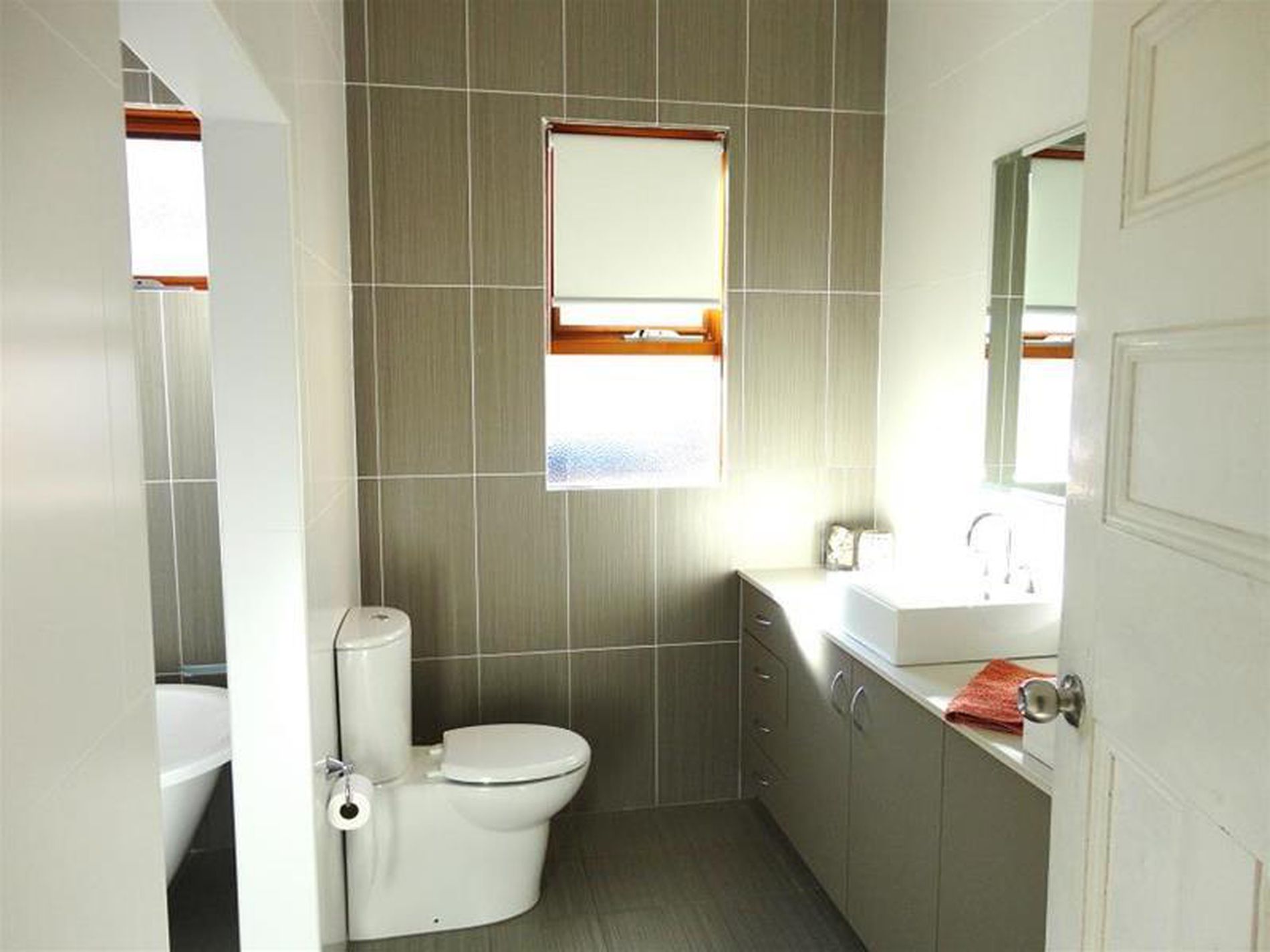 * Large modern bathroom with double vanity