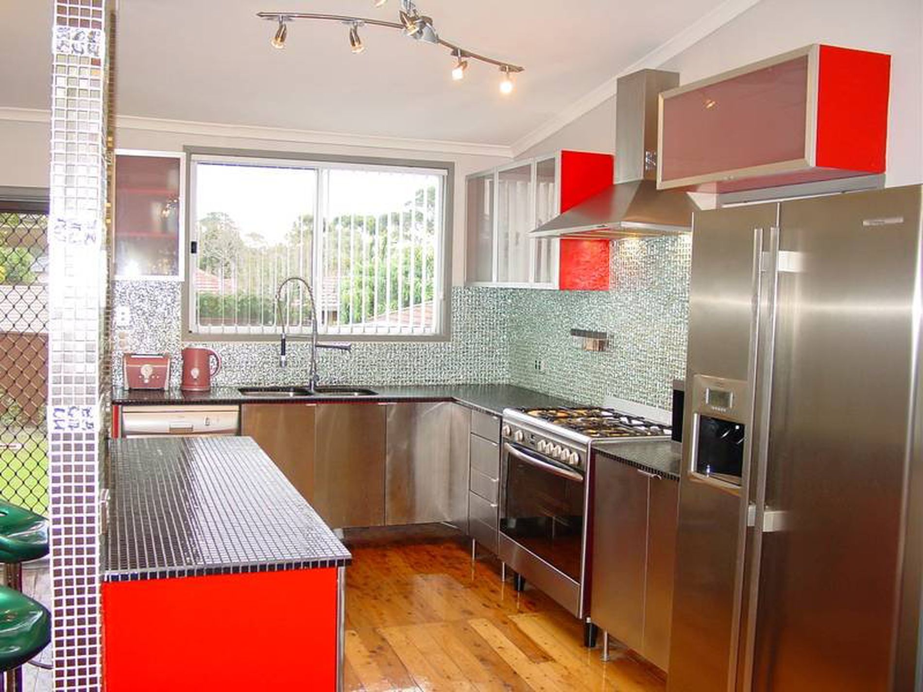Out of this world hostess kitchen with stainless steel appliances and a