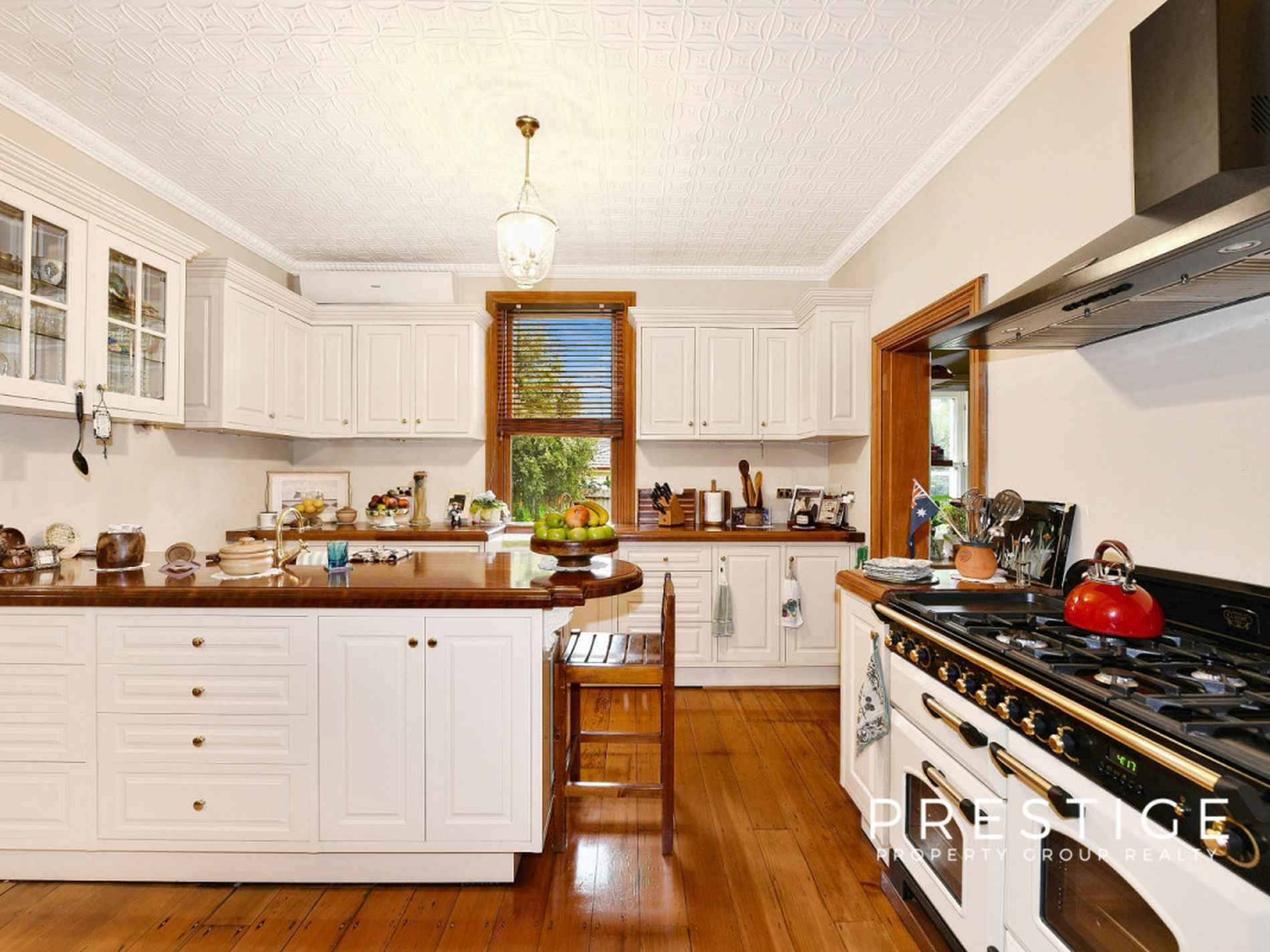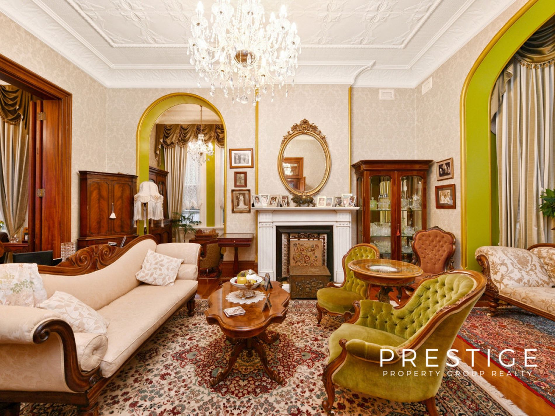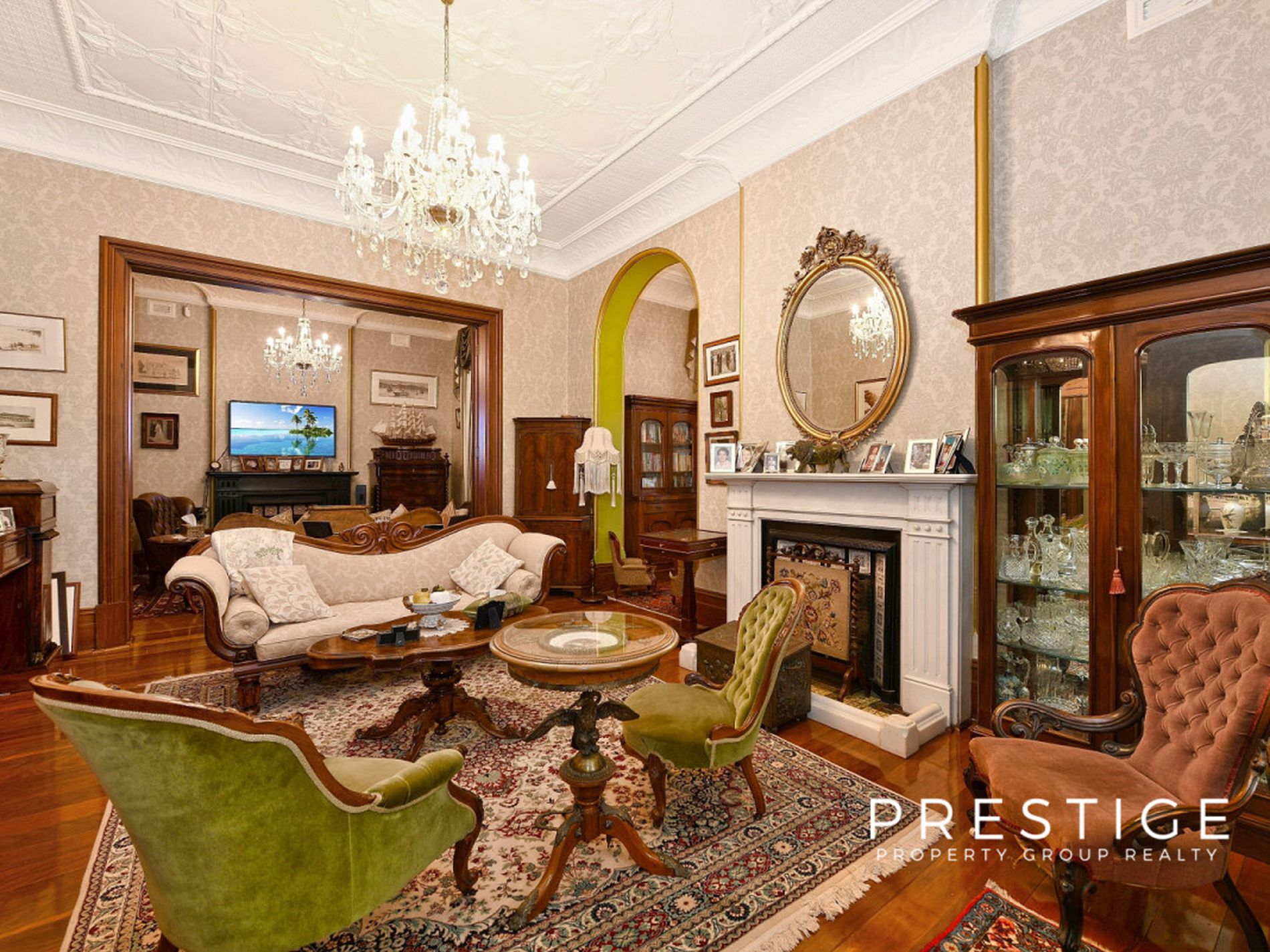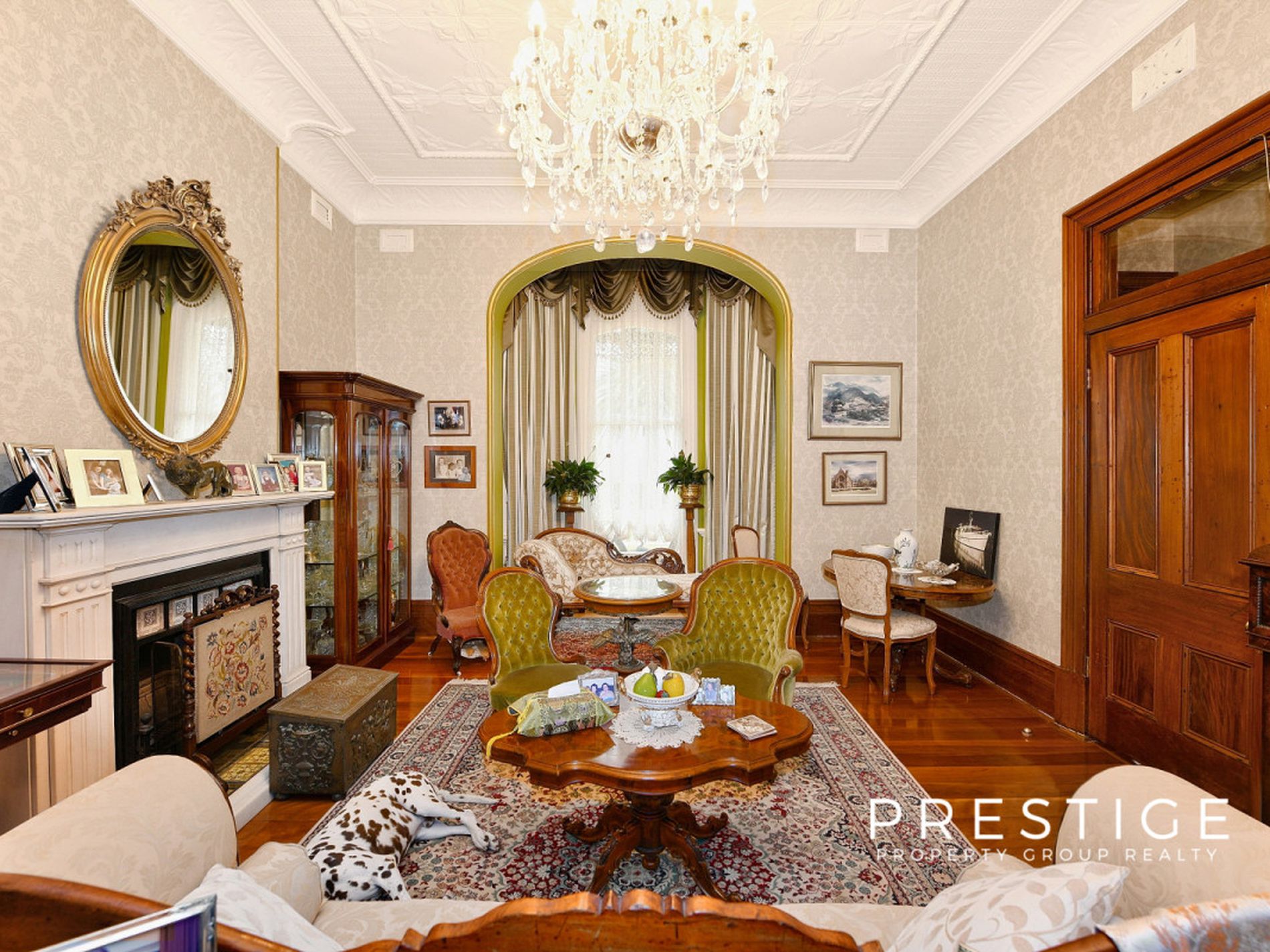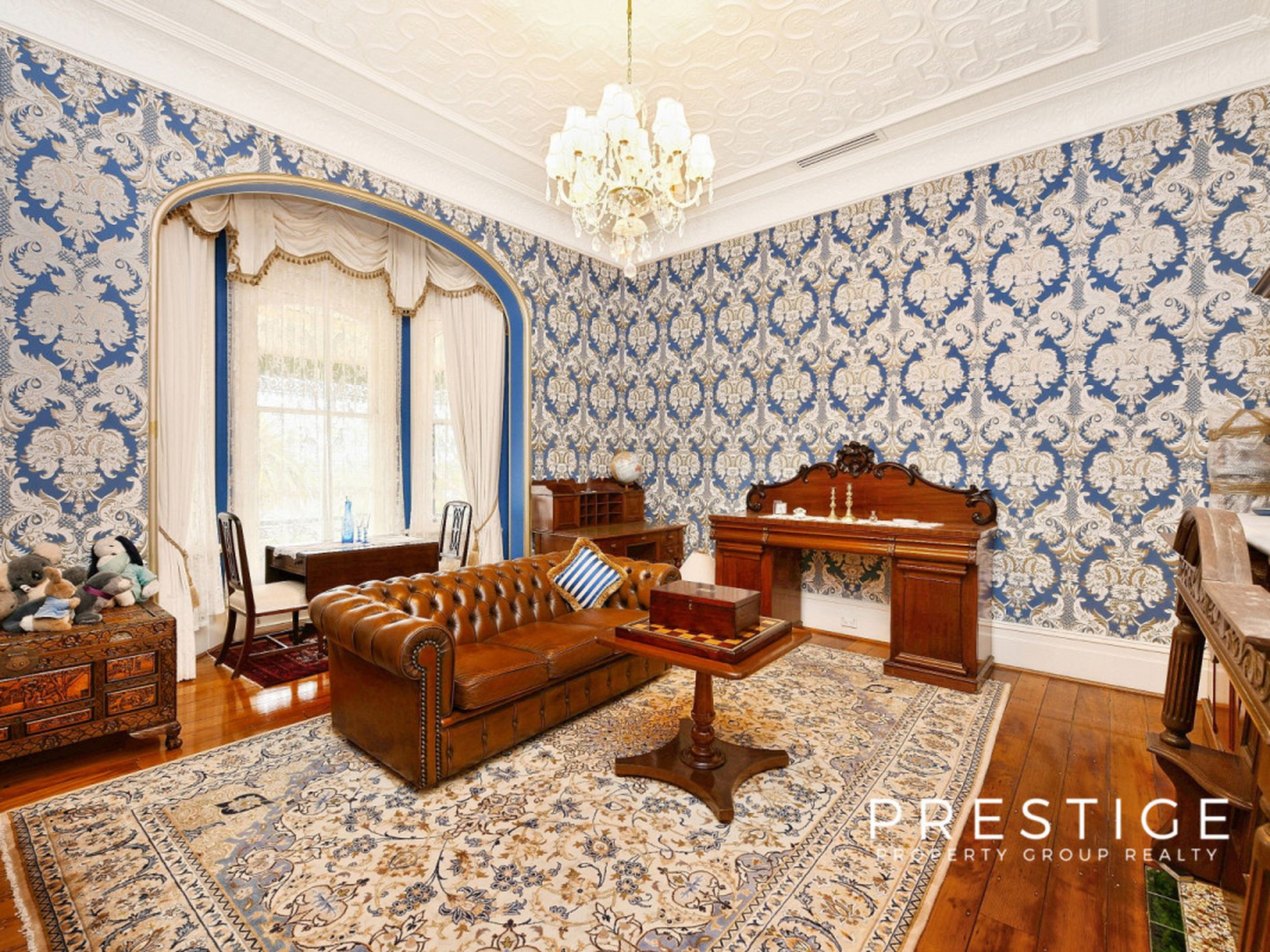 - Grand formal living areas, formal dining room, soaring ceilings (3.5m), with decorative pressed metal, 7 magnificent marble fireplaces, in working order; and stunning Australian Red Cedar joinery, library with built in bookcases, fully reverse cycle air conditioned throughout. Stunning wallpapers, drapes & blinds & dcor, polished original and new floorboards, all work carried out by quality tradesmen.
