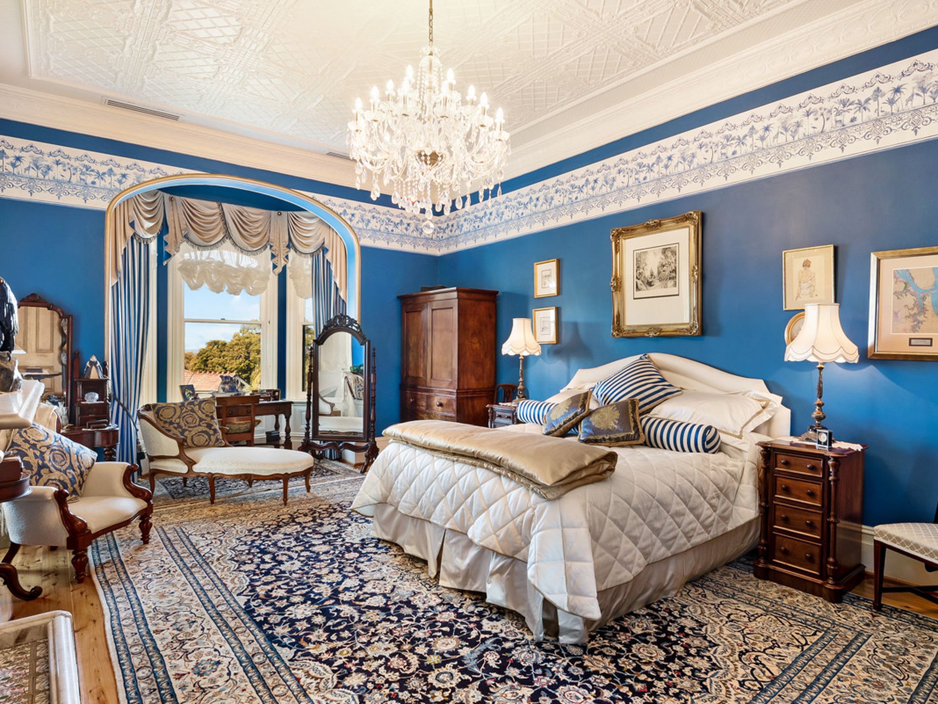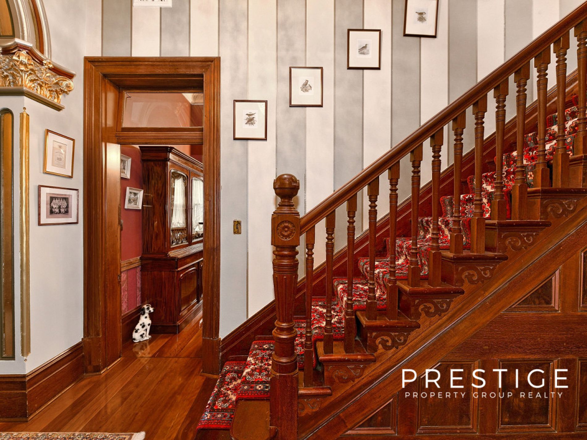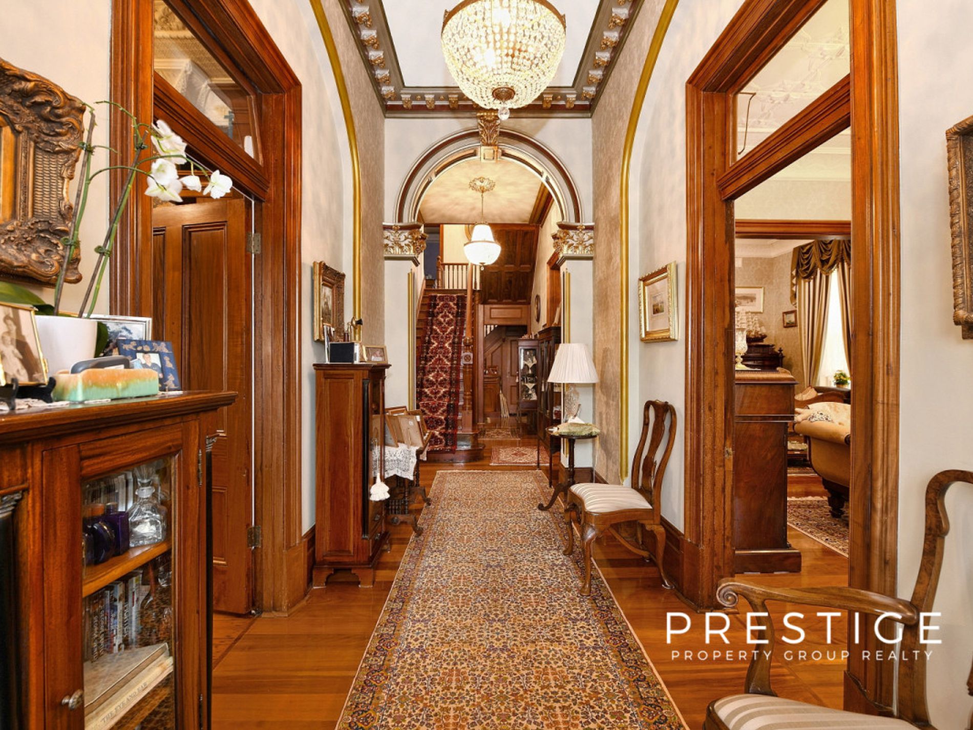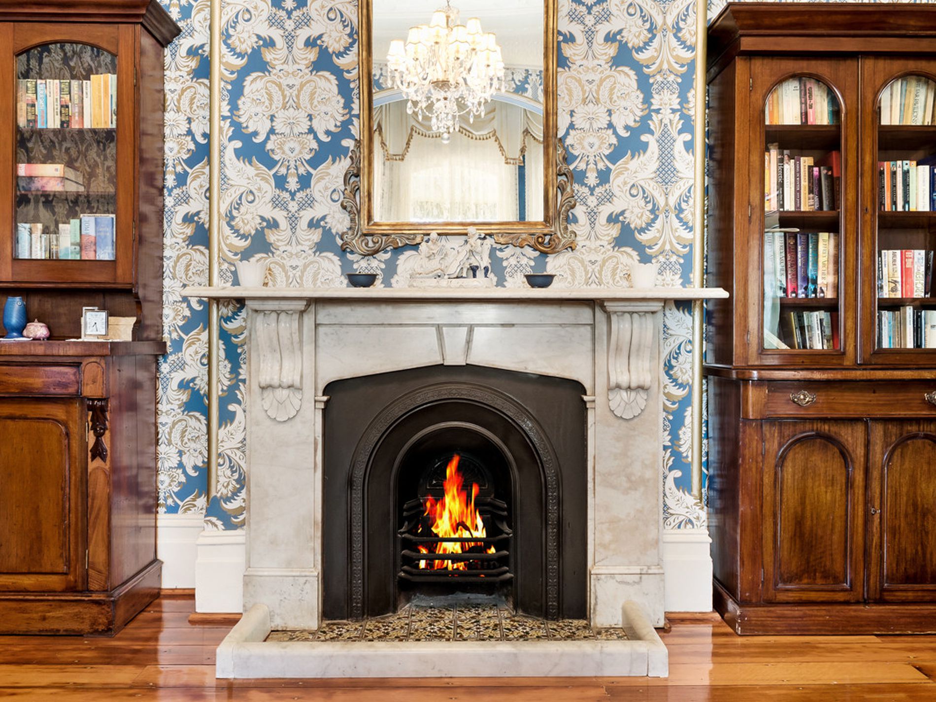 - Grand formal living areas, formal dining room, soaring ceilings (3.5m), with decorative pressed metal, 7 magnificent marble fireplaces, in working order; and stunning Australian Red Cedar joinery, library with built in bookcases, fully reverse cycle air conditioned throughout. Stunning wallpapers, drapes & blinds & dcor, polished original and new floorboards, all work carried out by quality tradesmen.