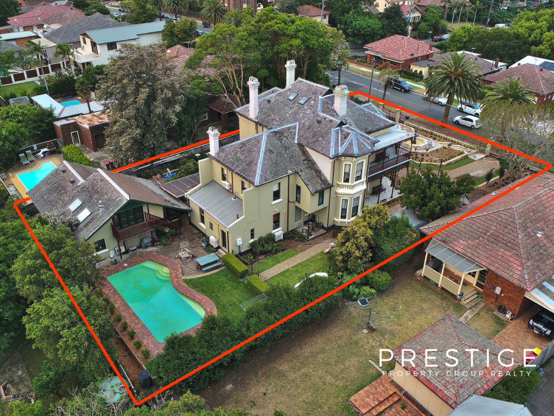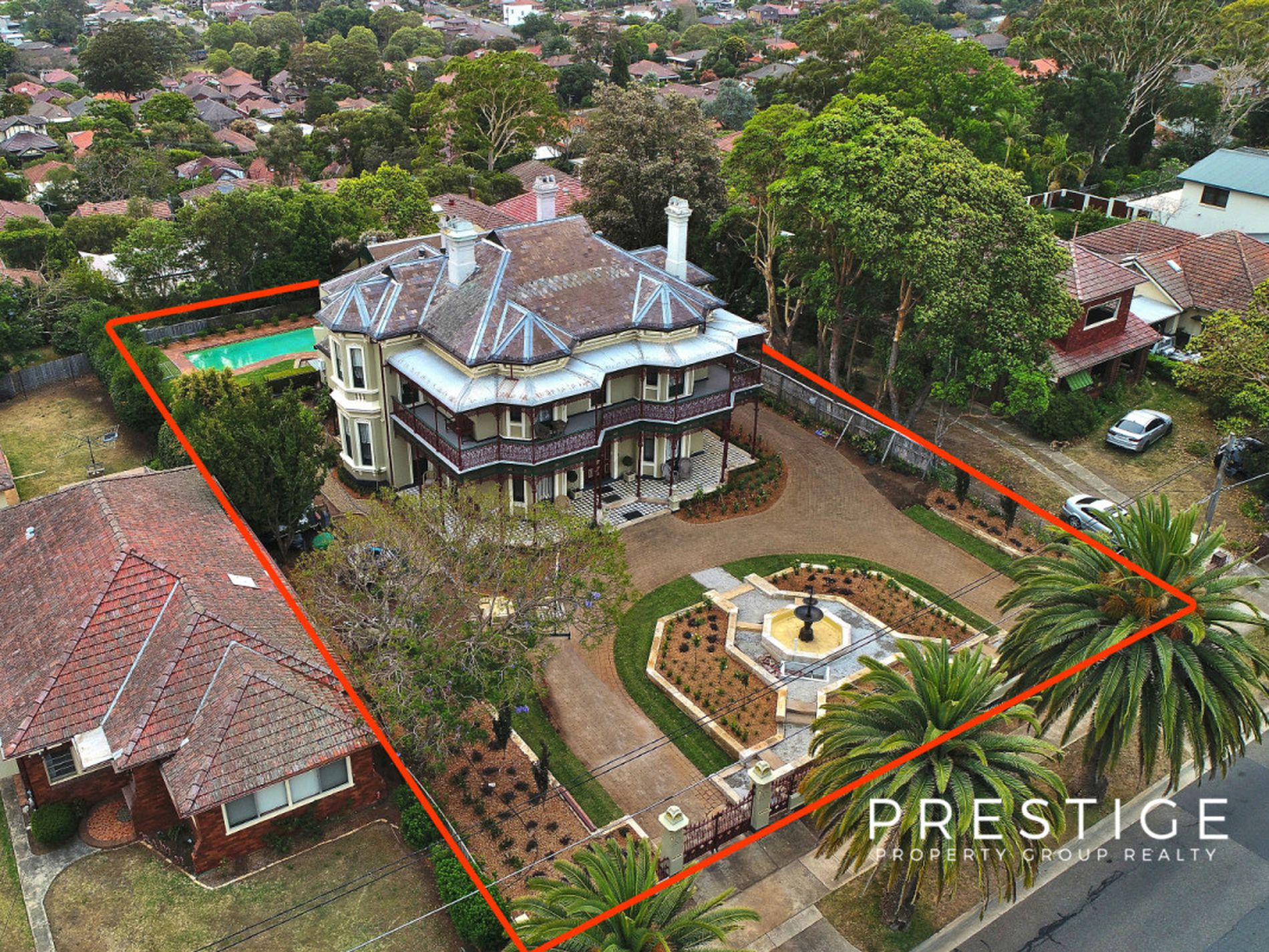 - North facing,30m frontage, original cast iron fence, formal landscaped gardens with Classical fountain as centrepiece, irrigation with recycled water. Slate roof, recently fully refurbished by traditional tradesmen in traditional style with lead flashings & gutters, Dutch gables, corbels and other features. Walk around roof space, new Australian wool insulation, Attic bedroom has built in storage.