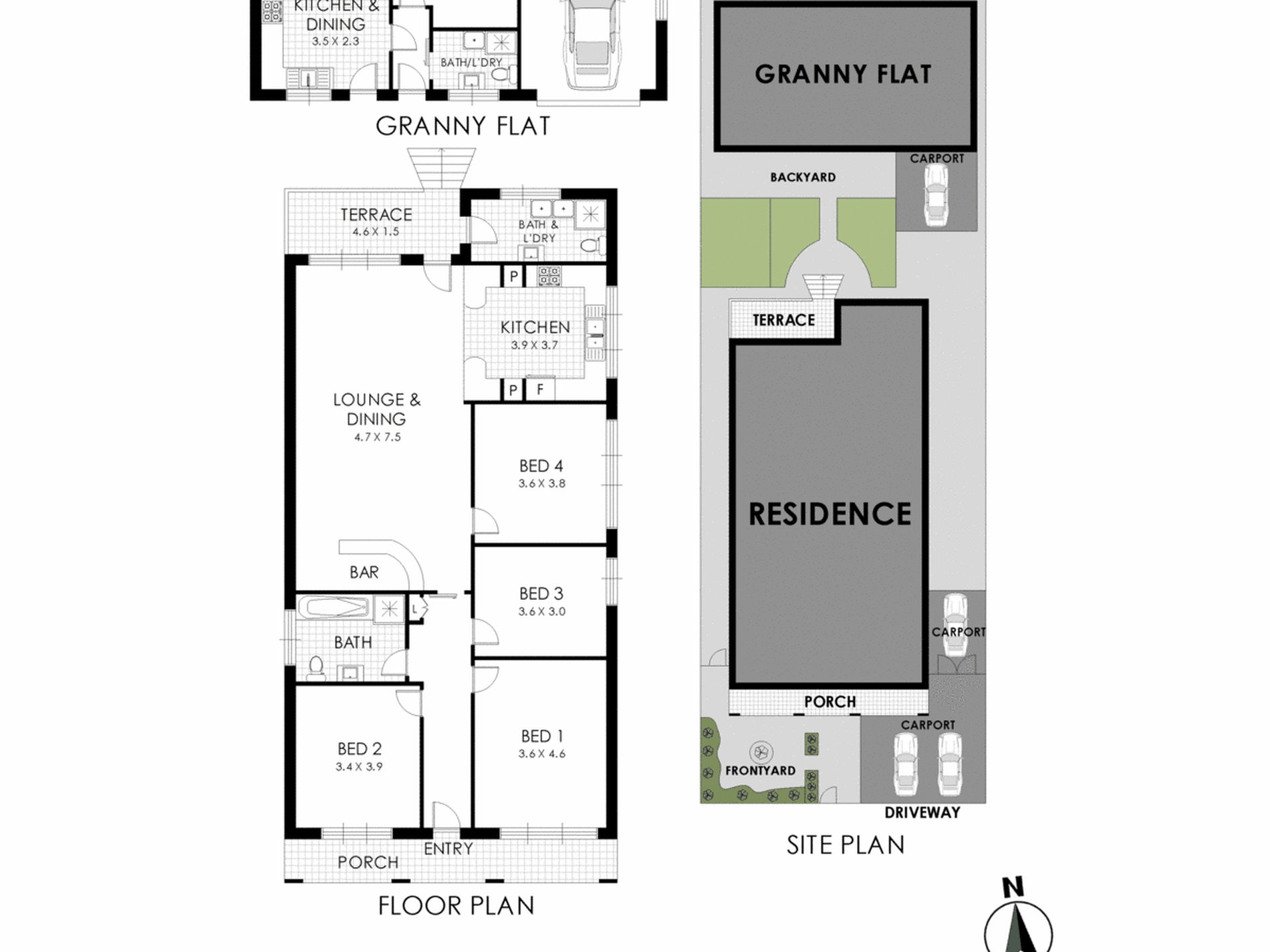 Lock up garage at rear + front carport