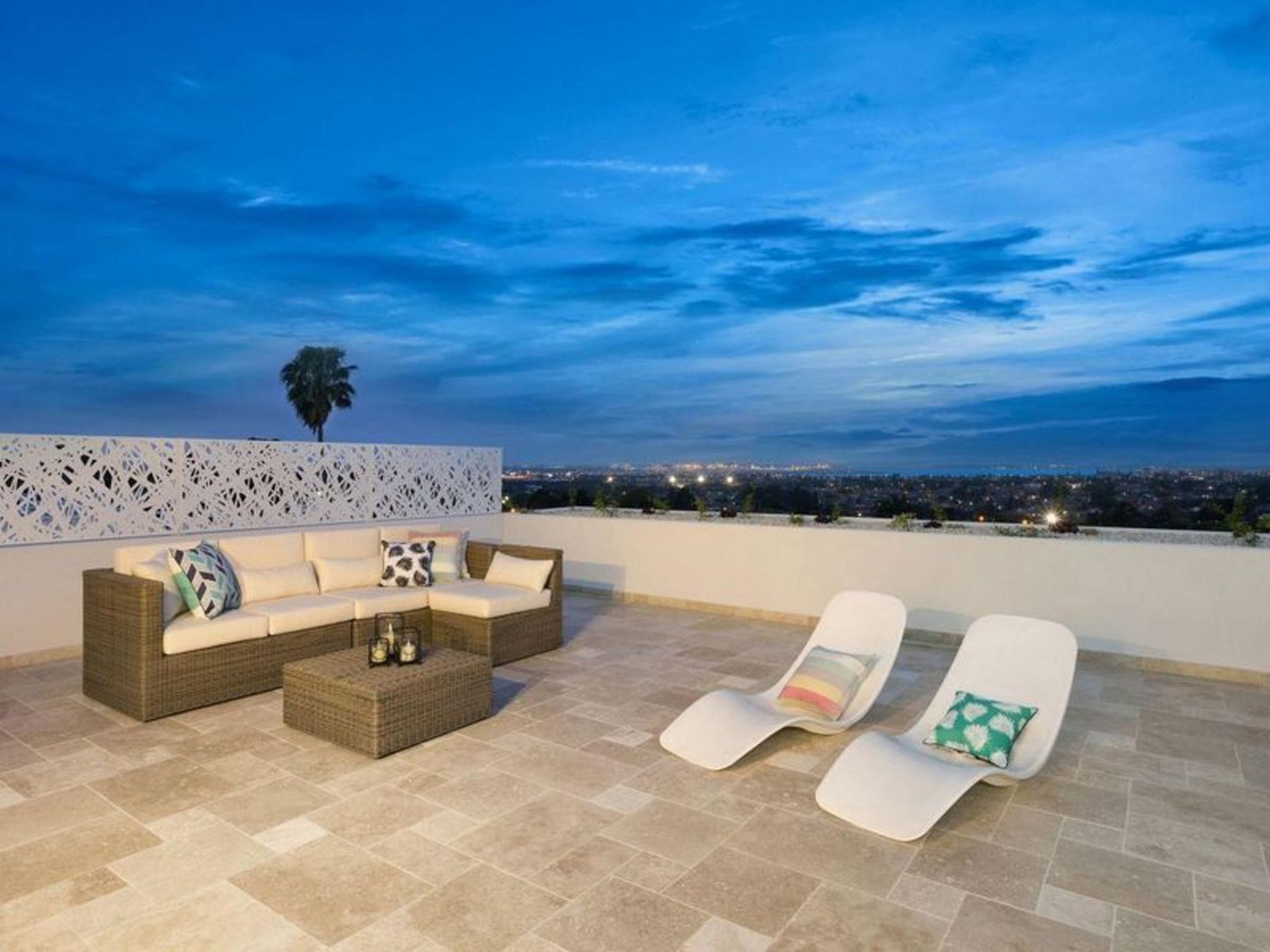Rooftop entertaining terrace set against sublime bay backdrop