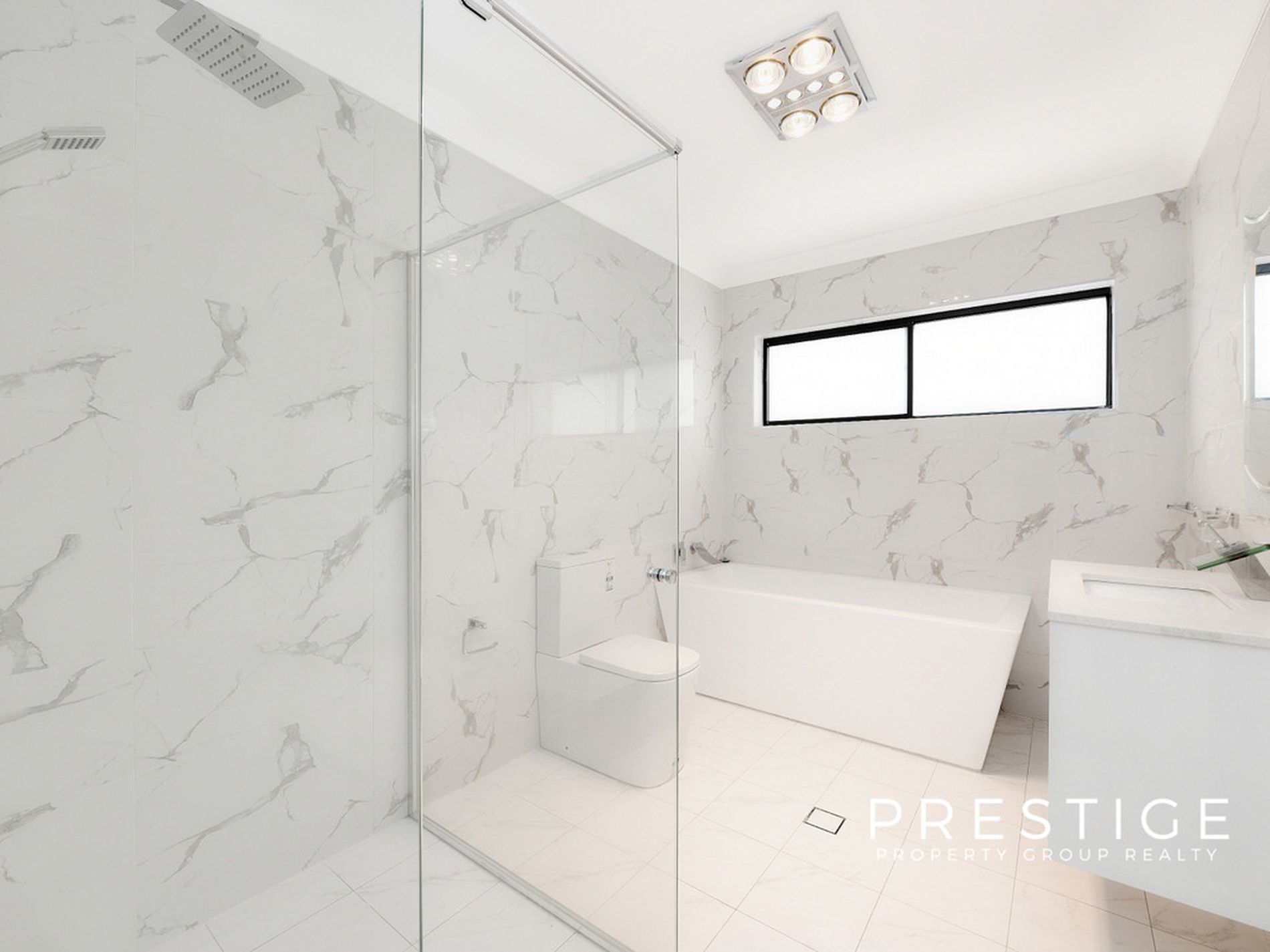 - Modern bathrooms with floor to ceiling tiles