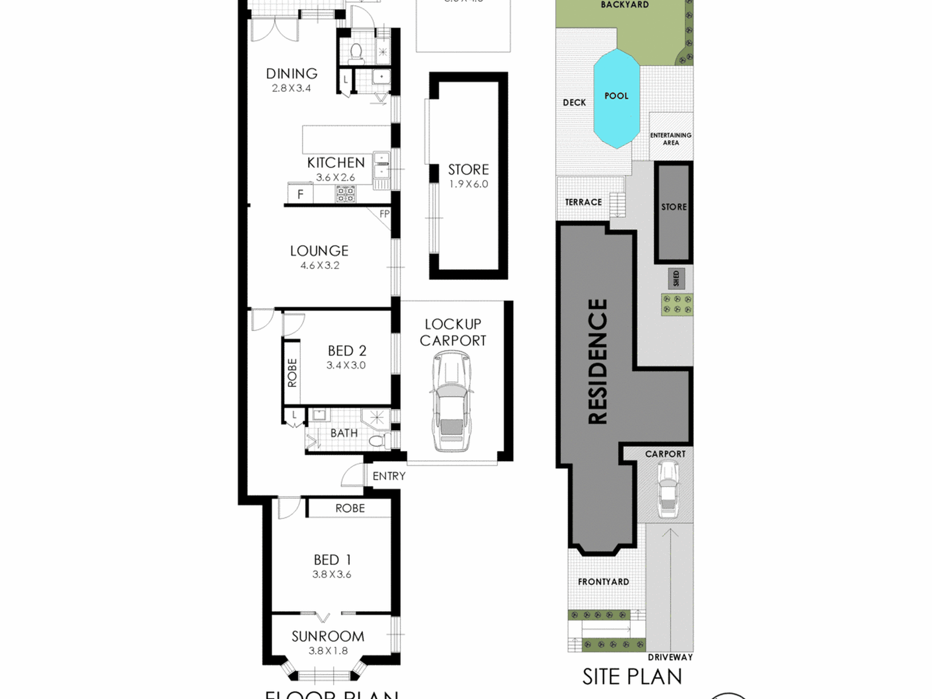 Private sunny grassed yard