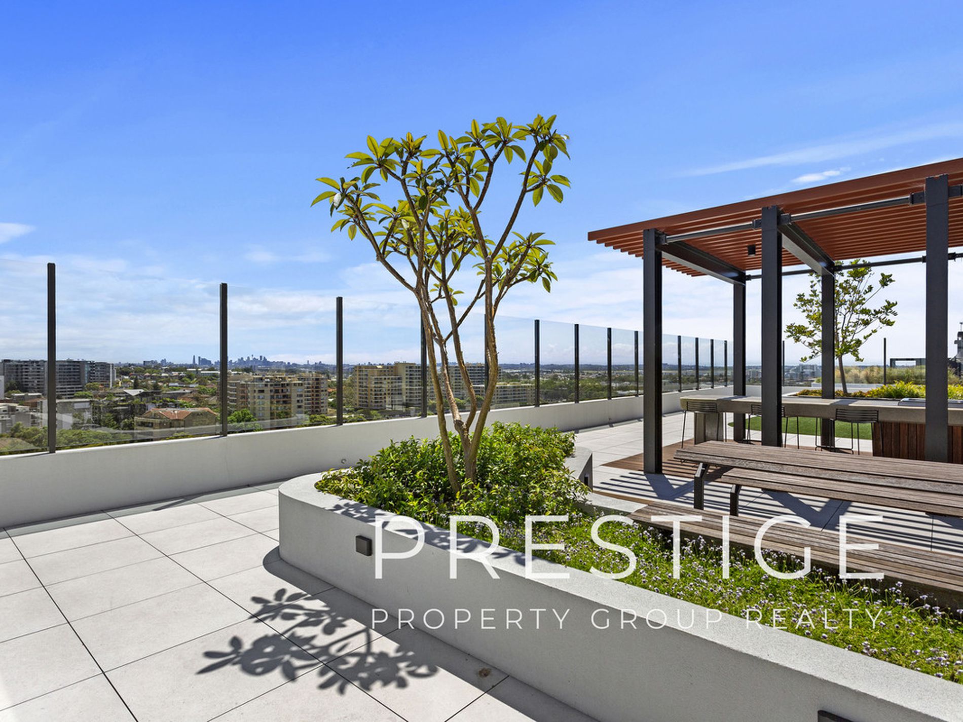 - Panoramic bay and city views from communal rooftop area