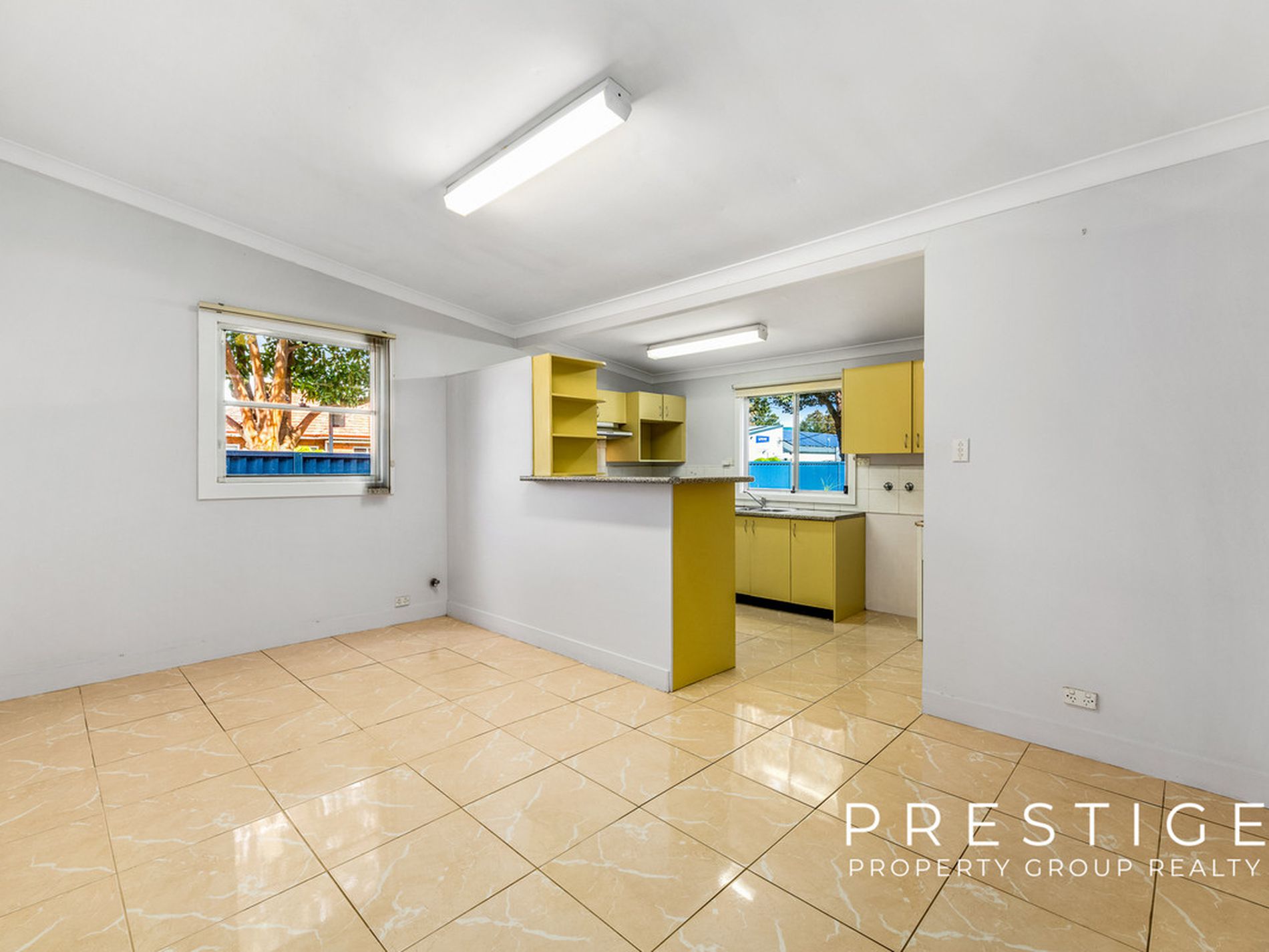 * Large lounge room with refreshed interiors, open plan dining room