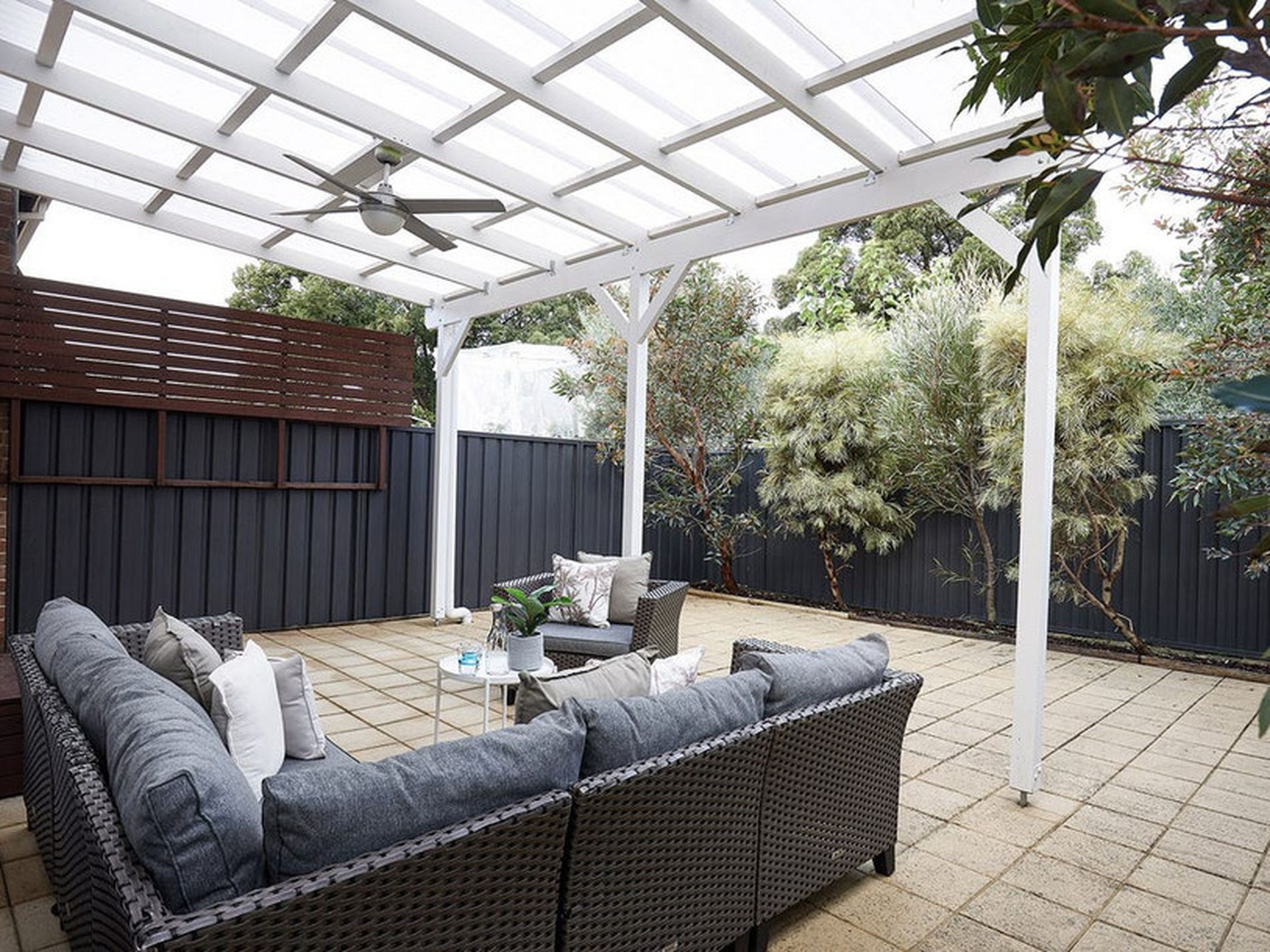 * Private leafy and covered courtyard