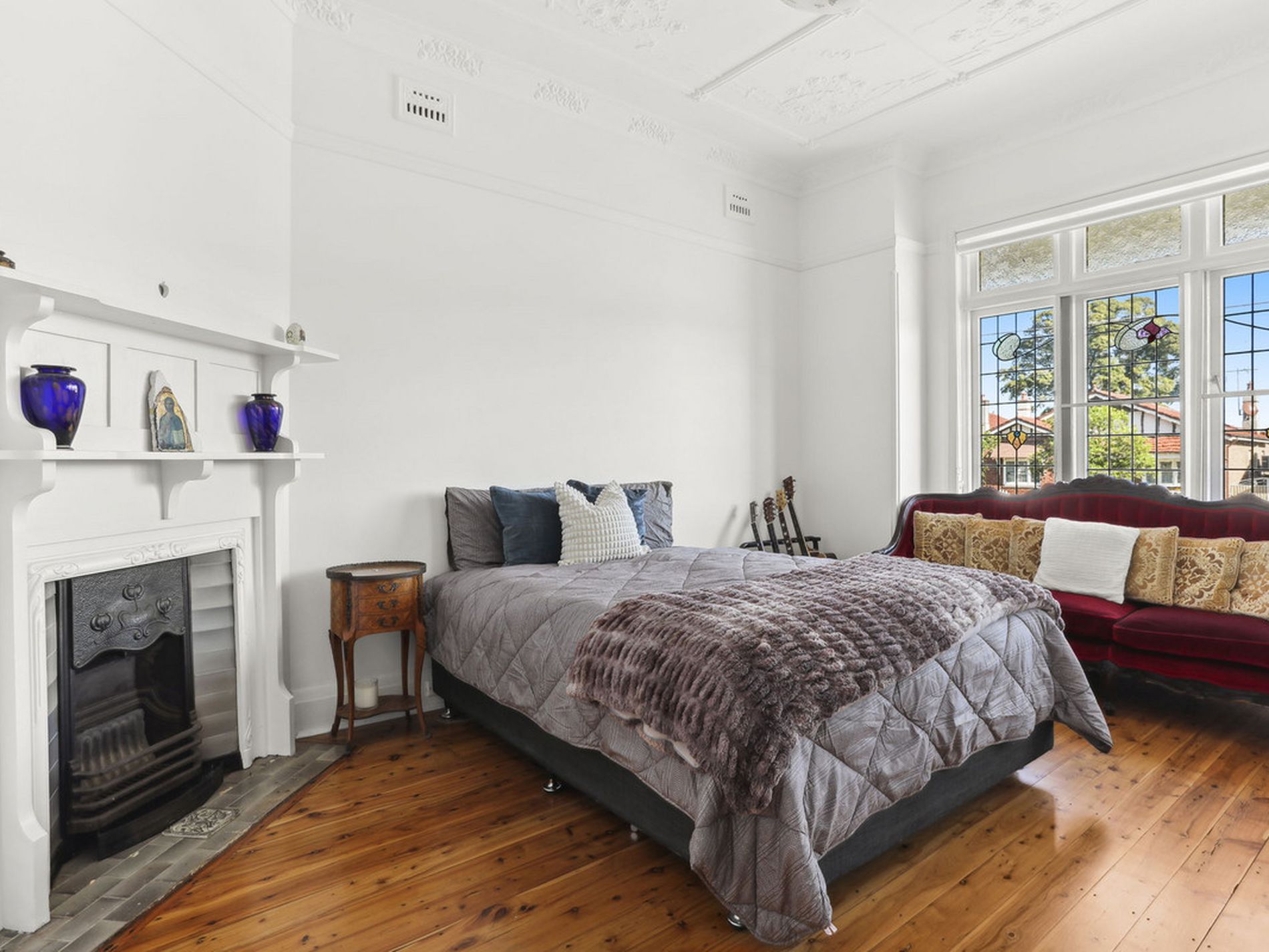 - Solid double brick construction adorned with ornate ceilings, picture rails, period fireplaces, and exquisite lead-light windows.