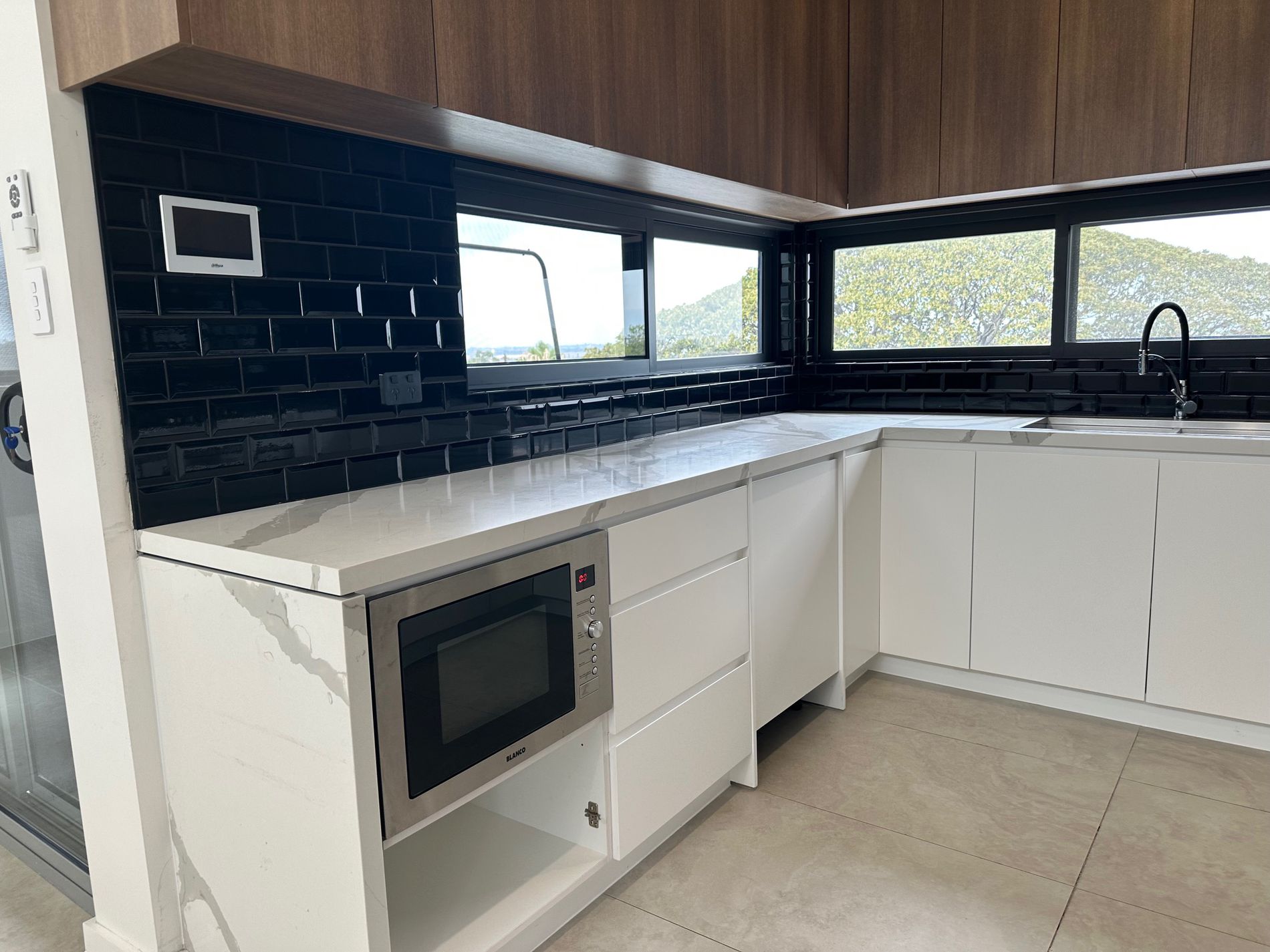 As a top‑floor residence, the home does not include a yard; however, it more than makes up for it with two balconies, including a large covered balcony capturing bay views and a second balcony featuring an integrated BBQ—perfect for relaxed outdoor dining and entertaining.